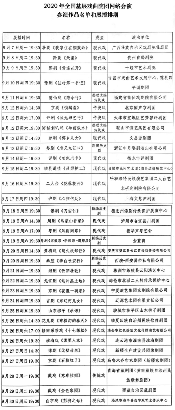 迎中秋,庆国庆。9月7日,“2020年全国基层戏曲院团网络会演”盛大启幕,为“双节”献礼。即日起至9月30日,33台国内优秀剧目持续展演,剧种丰富、题材多样。